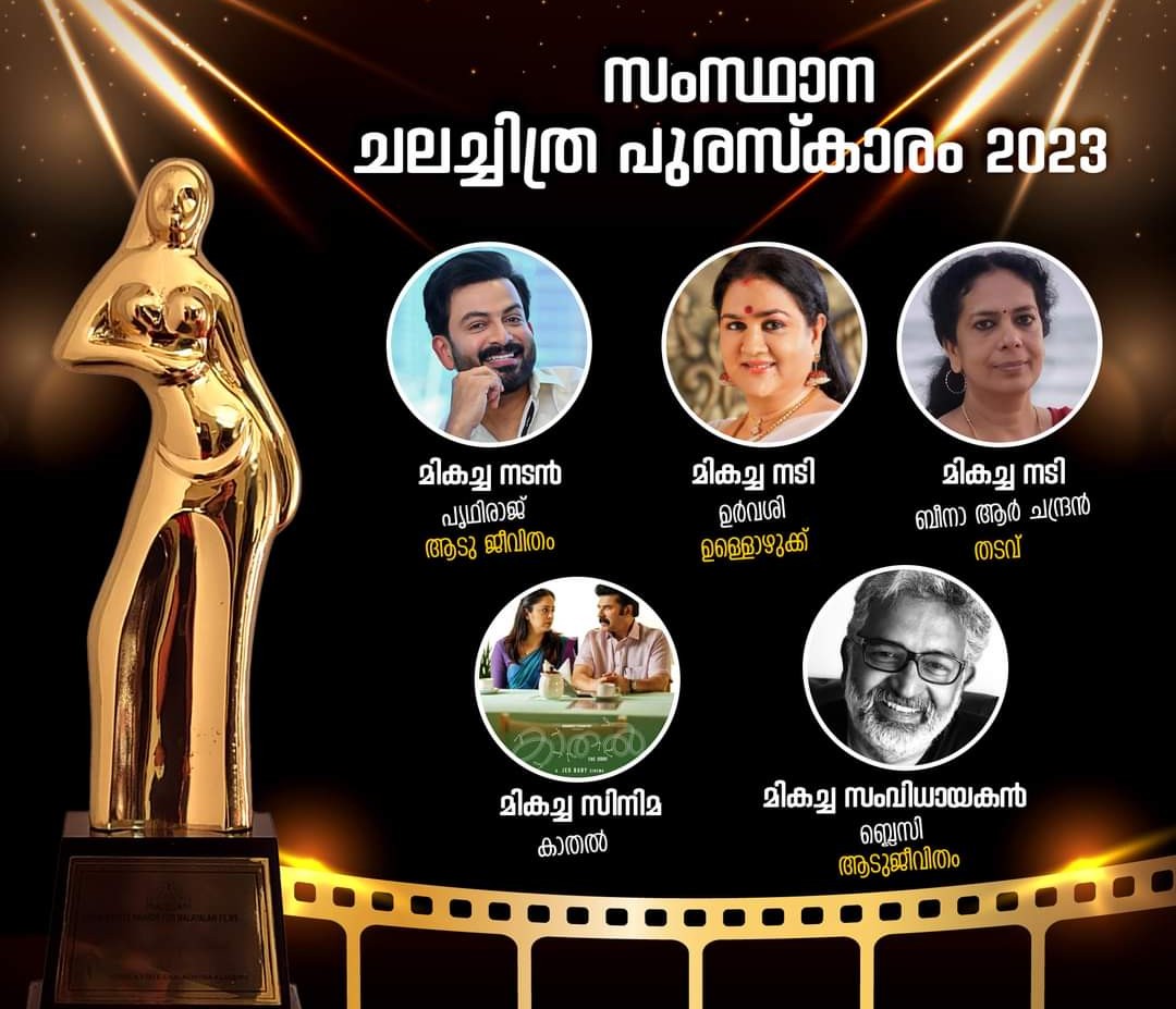 ജിയോ ബേബി സംവിധാനം ചെയ്ത ‘കാതൽ-ദി കോർ’ ആണ് മികച്ച ചിത്രം. മികച്ച നടനുള്ള പുരസ്കാരം ‘ആടുജീവിത’ത്തിലെ അഭിനയത്തിന് പൃഥിരാജ് സുകമാരന് ലഭിച്ചു.