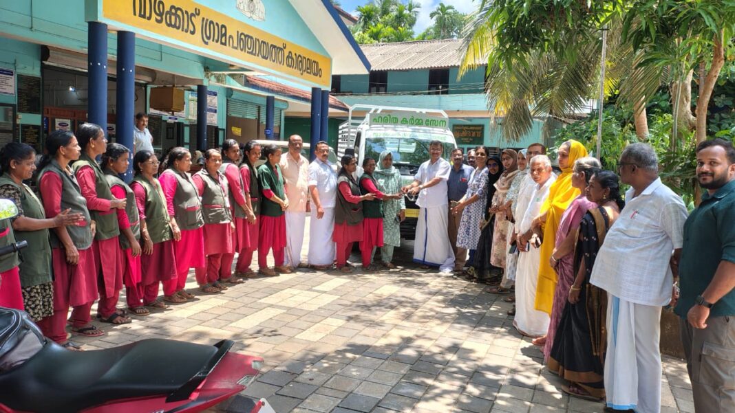 വാഴക്കാട്: ഗ്രാമീണ മേഖലയിലെ മാലിന്യ സംസ്കരണ പ്രവർത്തനങ്ങളിൽ നിർണ്ണായക പങ്ക് വഹിക്കുന്ന വാഴക്കാട് ഗ്രാമപഞ്ചായത്ത് ഹരിത കർമ്മസേനയ്ക്ക് വേണ്ടി വാർഷിക പദ്ധതിയിൽ ഉൾപ്പെടുത്തി വാങ്ങിയ ഡീസൽ വാഹനത്തിന്റെ താക്കോൽദാന ചടങ്ങ് ഗ്രാമപഞ്ചായത്ത് പ്രസിഡന്റ് അഡ്വ. എം.കെ. നൗഷാദ് ഉദ്ഘാടനം ചെയ്തു.
