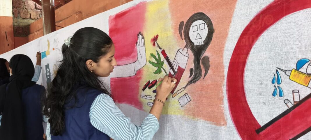 വാഴക്കാട് : ജി എച്ച് എസ് എസ് വാഴക്കാട് നടന്ന ലഹരിവിരുദ്ധ ബിഗ് ക്യാൻവാസ് ശ്രദ്ധേയമായി .കലയാണ് ലഹരി എന്ന സന്ദേശമുയർത്തി സ്കൂൾ ആർട്ട് & വർക്ക് എക്സ്പീരീയൻസ് ക്ലബ്ബിന്റെ നേതൃത്വത്തിൽ ഒരുകൂട്ടം കലാകാരികൾ തയ്യാറാക്കിയ ബിഗ് കാൻവാസ് ശ്രദ്ധേയമായി. നിരവധി കൊച്ചു കൂട്ടുകാരാണ് പ്രസ്തുത പരിപാടിയിൽ ചിത്രങ്ങൾക്ക് നിറം നൽകിയത് .