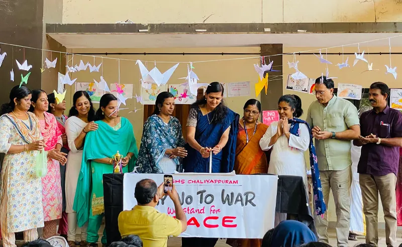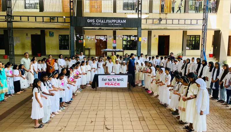 Edavannappara: On the occasion of Hiroshima Day, Chaliyapuram Government High School observed a peace campaign led by the Social Science Club, protesting against the killing of children during wartime. The students lit candles and organized anti-war activities, spreading the message: “Say No to War, We Stand for Peace.”