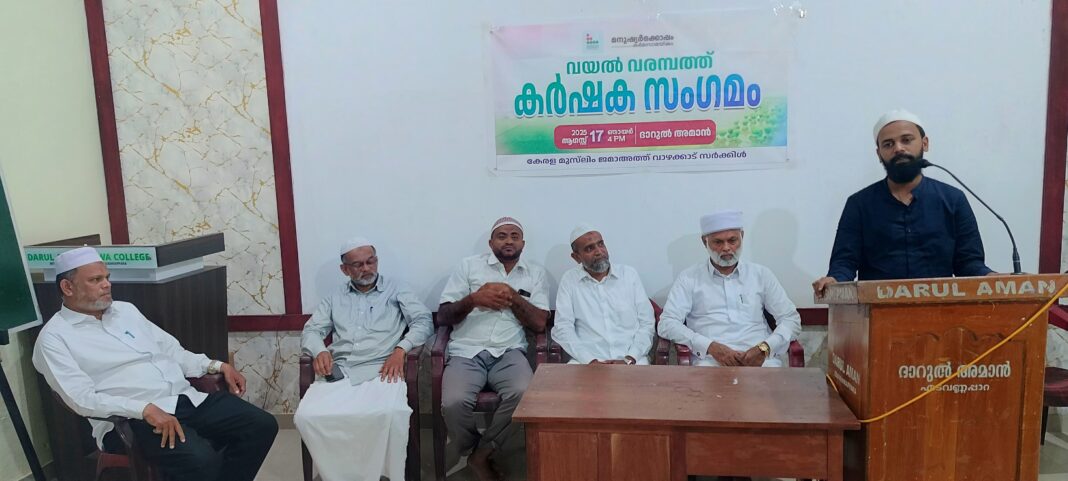 .എടവണ്ണപ്പാറ ദാറുൽ അമാൻ ക്യാമ്പസിൽ നടന്ന സംഗമം എടവണ്ണപ്പാറ സോൺ കേരള മുസ്ലിം ജമാഅത്ത് ജനറൽ സെക്രട്ടറി റസാഖ് മാസ്റ്റർ വെട്ടുപാറ ഉദ്ഘാടനം ചെയ്തു, ചുങ്കത്തറ ജില്ലാ കൃഷിത്തോട്ടം ടെക്നിക്കൽ ഓഫീസർ അബ്ദുൽ ജബ്ബാർ പന്നിക്കോട് വിഷയാവതരണം നടത്തി, സർക്കിൾ മുസ്ലിം ജമാഅത്ത് പ്രസിഡണ്ട് അബ്ദുസത്തർ ഹാജി കണ്ണത്തുംപ്പാറ അധ്യക്ഷം വഹിച്ചു, കർഷകർക്കുള്ള തൈ വിതരണം സോൺ കേരള മുസ്ലിം ജമാഅത്ത് പ്രസിഡണ്ട് സയ്യിദ് അഹമ്മദ് കബീർ മദനി അൽ ബുഖാരി കൊന്നാര നിർവഹിച്ചു, സി ബഷീർ മാസ്റ്റർ, ഇബ്രാഹിം മാസ്റ്റർ മുണ്ടക്കൽ എന്നിവർ സംസാരിച്ചു, ചടങ്ങിൽ കേരള മുസ്ലിം ജമാഅത്ത് വാഴക്കാട് സർക്കിൾ കർഷകസംഘം രൂപീകരിച്ചു, എക്സൽ സൈനുദ്ദീൻ ഹാജി സ്വാഗതവും, എം എം ലത്തീഫ് ഹാജി മണ്ണറോട്ട് നന്ദിയും പറഞ്ഞു.