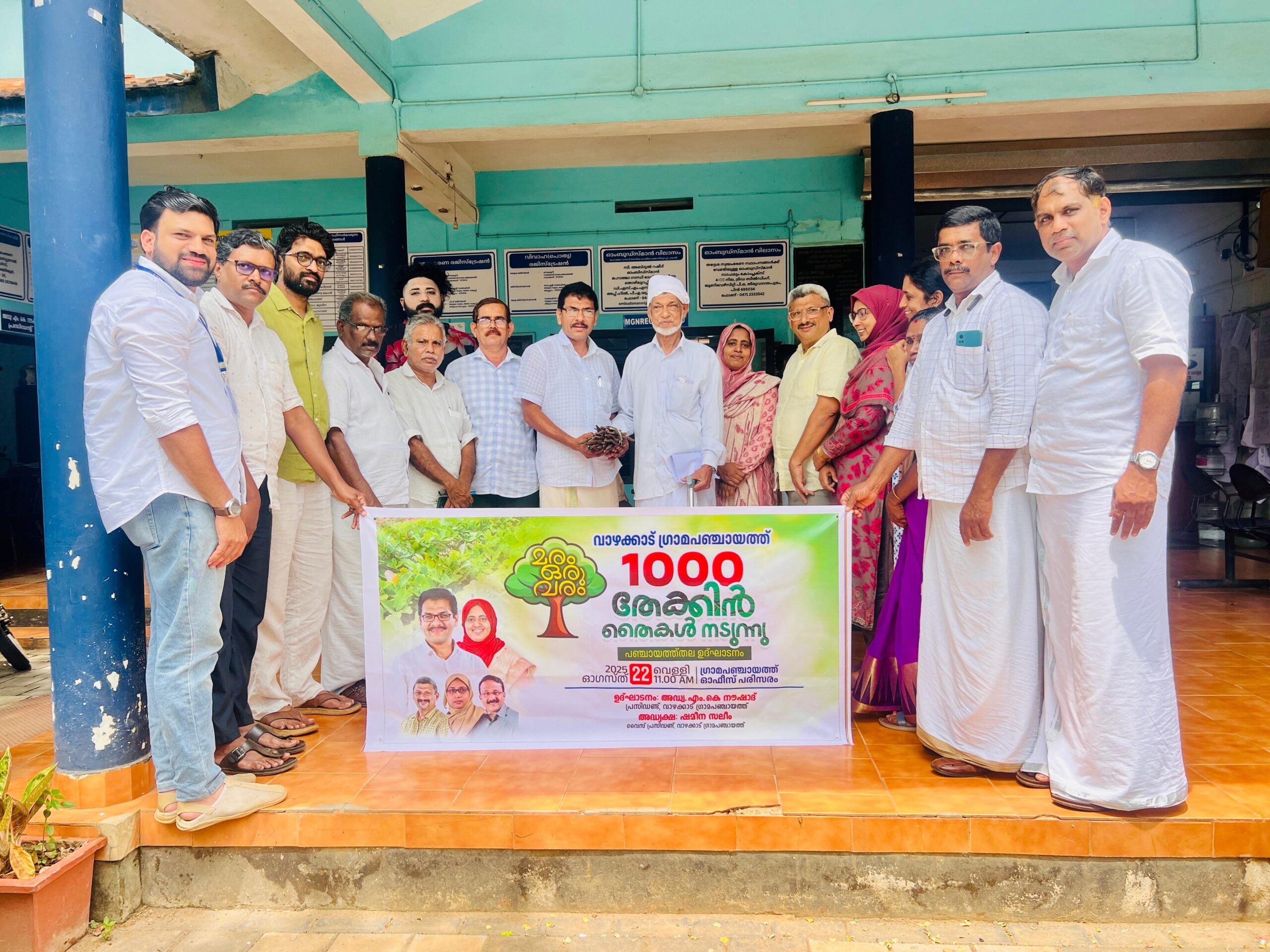 വാഴക്കാട് ഗ്രാമപഞ്ചായത്തിന്റെ ആഭിമുഖ്യത്തിൽ “മരം ഒരു വരം” ഭാഗമായി പൊതുസ്ഥലങ്ങളിൽ ആയിരം തേക്കിൻ തൈകൾ നടലിന് തുടക്കമായി.