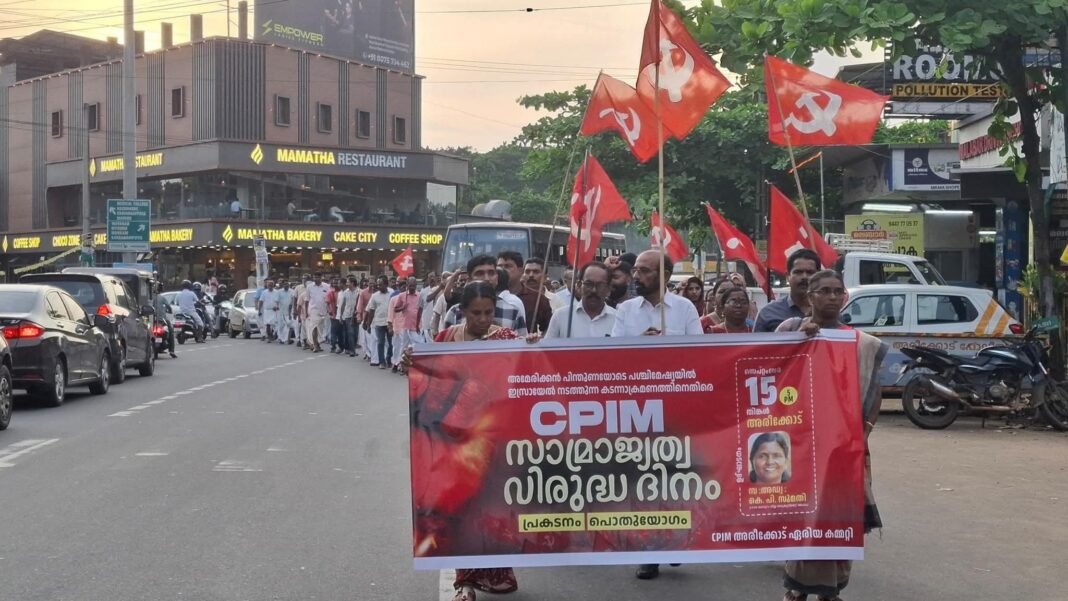അരീക്കോട്: അമേരിക്കൻ പിന്തുണയോടെ ഇസ്രായേൽ നടത്തുന്ന കടന്നാക്രമണങ്ങൾക്കെതിരെ സിപിഐ(എം) അരീക്കോട് ഏരിയ കമ്മിറ്റി അരീക്കോട് ടൗണിൽ സാമ്രാജ്യത്വ വിരുദ്ധ സദസ്സ് സംഘടിപ്പിച്ചു.