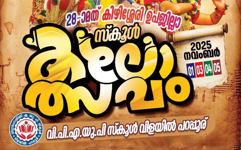 28 -മത് കിഴിശ്ശേരി ഉപജില്ലാ കലോത്സവം. നവം: 1-5 വിളയിൽ പറപ്പൂർ VPAUP സ്കൂളിൽ; സ്വാഗതസംഘ രൂപീകരണ യോഗം നാളെ.