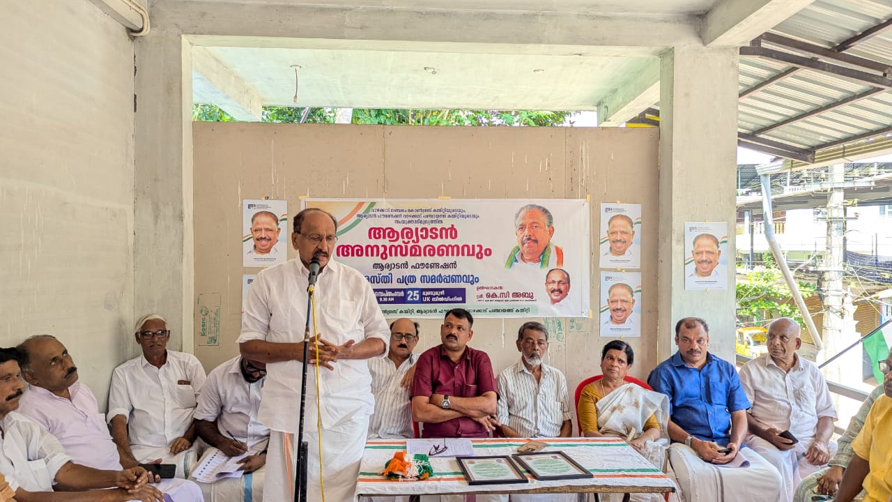 മണ്ഡലം കോൺഗ്രസ് പ്രസിഡണ്ട് ജൈസൽ എളമരം അധ്യക്ഷത വഹിച്ചു.മണ്ഡലം കോൺഗ്രസ് ജനറൽ സെക്രട്ടറി യു.കെ അസൈൻ പ്രശസ്തിപത്രം വായിച്ചു.ആര്യാടൻ ഫൗണ്ടേഷൻ പഞ്ചായത്ത് ചെയർമാൻ ബീരാൻ കോയ ഊർക്കടവ് സ്വാഗതവും കൺവീനർ മാനുട്ടി കുനിക്കാടൻ നന്ദിയും പറഞ്ഞു.DCC മുൻ ജനറൽ സെക്രട്ടറി KMA റഹ്മാൻ, പഞ്ചായത്ത് വൈസ് പ്രസിഡണ്ട് ഷമീന സലീം, മുൻ പ്രസിഡണ്ട് സി.വി. സക്കറിയ, മുൻ മണ്ഡലം പ്രസിഡണ്ട് സി.കെ. മുഹമ്മദ് കുട്ടി മാസ്റ്റർ,DCC മെമ്പർ എം.മാധവൻ, സേവാദൾ ജില്ല പ്രസിഡണ്ട് പി.സുരേന്ദ്രൻ,ബ്ലോക്ക് കോൺഗ്രസ്സ് ഭാരവാഹികളായ എം.സി.അബ്ദുല്ല, പി.കെ. മുരളീധരൻ, ഒ.വിശ്വനാഥൻ എന്നിവർ സംസാരിച്ചു.പഞ്ചായത്ത് സ്ഥിരം സമിതി അധ്യക്ഷൻ സി.കെ. റഷീദ്, ബ്ലോക്ക് ഭാരവാഹികളായ