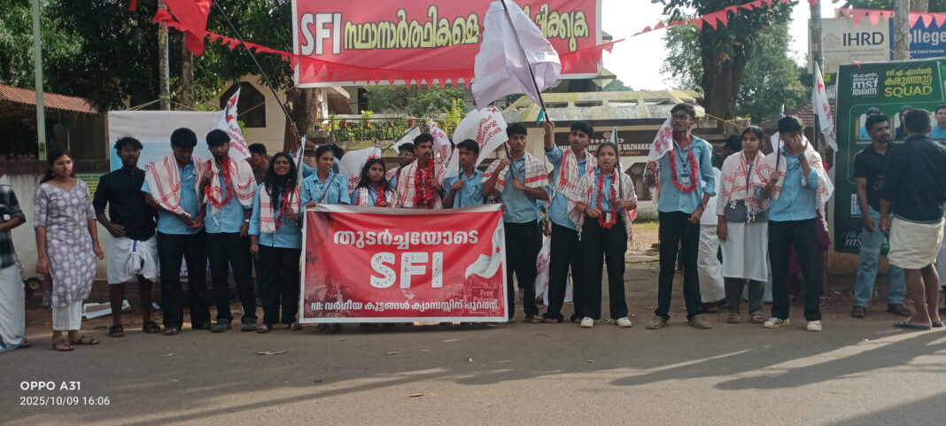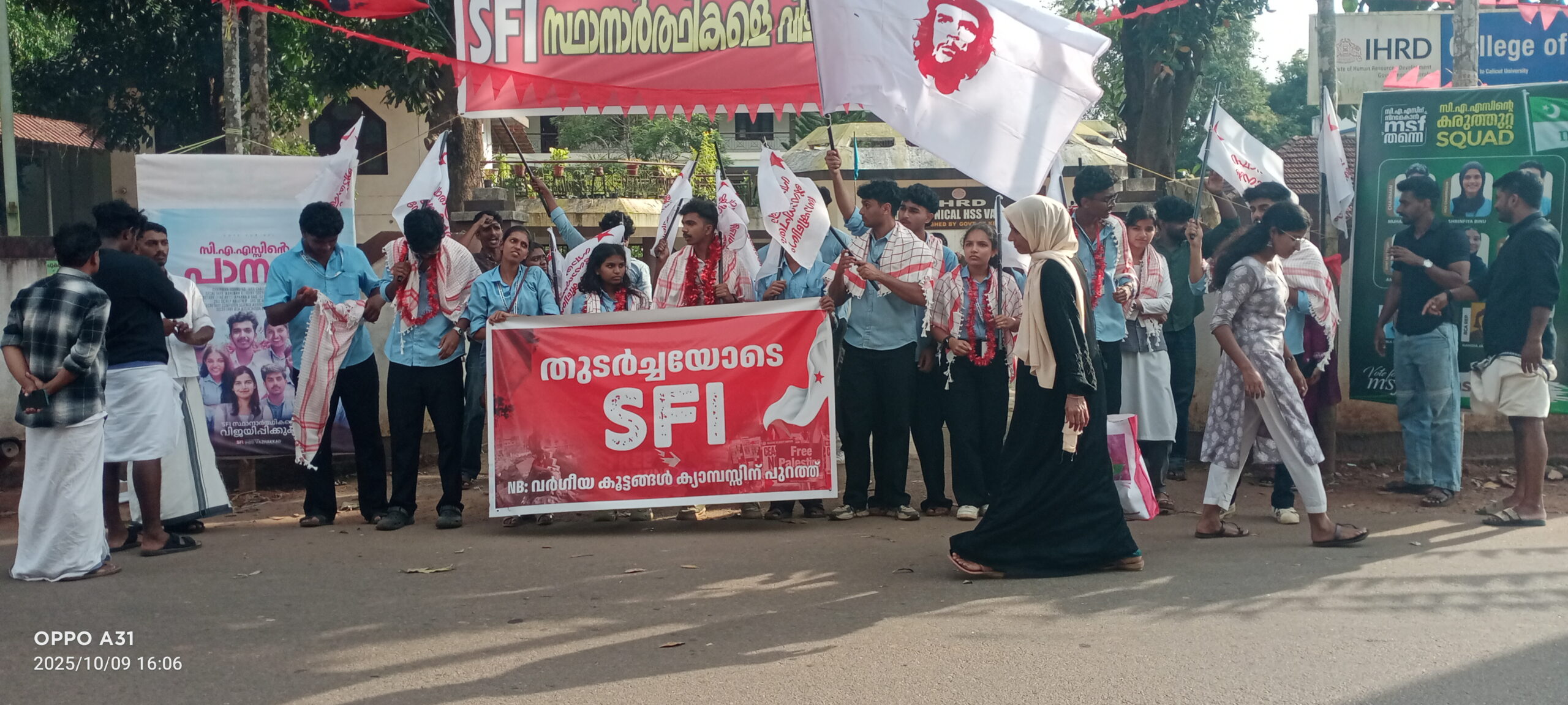 വാഴക്കാട് : കോളേജ് യൂണിയൻ തിരഞ്ഞെടുപ്പിൽ വാഴക്കാട് ഐ എച്ച് ആർ ടി അപ്ലൈഡ് സയൻസ് കോളേജിൽ എസ്എഫ്ഐ സ്ഥാനാർത്ഥികൾക്ക് തിളക്കമാർന്ന വിജയം. എം എസ് എഫ്- കെഎസ്യു കൂട്ടുകെട്ട് മുന്നണിയെ തകർത്തു മുഴുവൻ സീറ്റിലും വിജയനേടി എസ്എഫ്ഐ സ്ഥാനാർത്ഥികൾ.