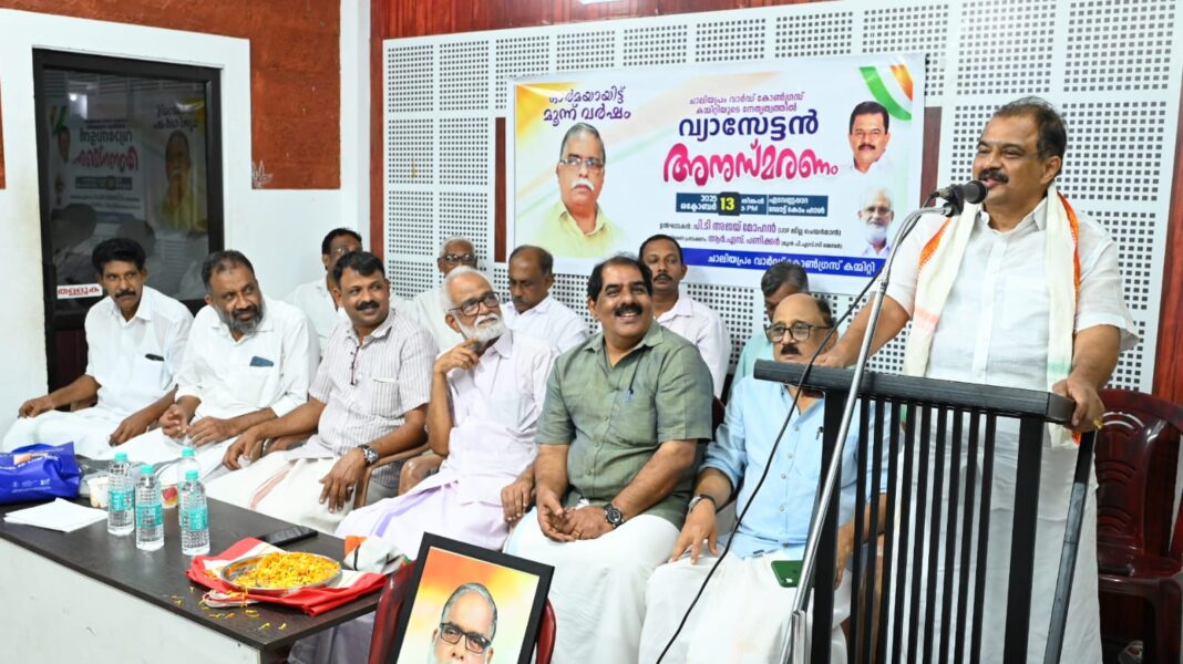 എടവണ്ണപ്പാറ: കോൺഗ്രസ് പ്രസ്ഥാനത്തിൻ്റെ കരുത്തുറ്റ നേതാവും, രാഷ്ട്രീയ – സാമൂഹിക- സാംസ്കാരിക- പരിസ്ഥിതി രംഗത്തെ നിറസാന്നിധ്യവും, ആദർശ രാഷ്ട്രീയത്തിന്റെ അടിയുറച്ച ശബ്ദവും, ഗാന്ധിയനുമായിരുന്ന കെ.വേദവ്യാസൻ്റെ മൂന്നാം ചരമവാർഷികത്തിൽ ചാലിയപ്രം വാർഡ് കോൺഗ്രസ് കമ്മിറ്റിയുടെ നേതൃത്വത്തിൽ എടവണ്ണപ്പാറ ഡോട്ട് കോം ഹാളിൽ വെച്ച് സംഘടിപ്പിച്ച വേദവ്യാസൻ അനുസ്മരണ ചടങ്ങ് ഉൽഘാടനം ചെയ്ത് സംസാരിക്കുകയായിരുന്നു. യു.ഡി.എഫ് ജില്ല ചെയർമാൻ പി.ടി അജയ് മോഹൻ. എല്ലാ മേഖലകളിലും തന്റേതായ കഴിവ് തെളിയിച്ച കരുത്തുറ്റ നേതാവായിരുന്ന എൻറെ അടുത്ത സുഹൃത്ത് കൂടിയായ വ്യാസനെന്ന് പി.എസ്.സി മുൻ മെമ്പർ ആർ.എസ് പണിക്കർ വേദവ്യാസൻ അനുസ്മരണ പ്രഭാഷണത്തിൽ പറഞ്ഞു.