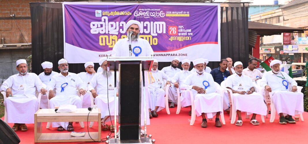 എടവണ്ണപ്പാറ : മനുഷ്യർക്കൊപ്പം എന്ന പ്രമേയത്തിൽ ജനുവരി 1 മുതൽ 16 വരെ കാസർകോട് മുതൽ തിരുവനന്തപുരം വരെ നടക്കുന്ന കേരള മുസ്ലിം ജമാഅത്ത് കേരള യാത്രയുടെ ഭാഗമായി സംഘടിപ്പിക്കപ്പെട്ട ജില്ലാ യാത്രക്ക് എടവണ്ണപ്പാറയിൽ വൻ സ്വീകരണം നൽകി